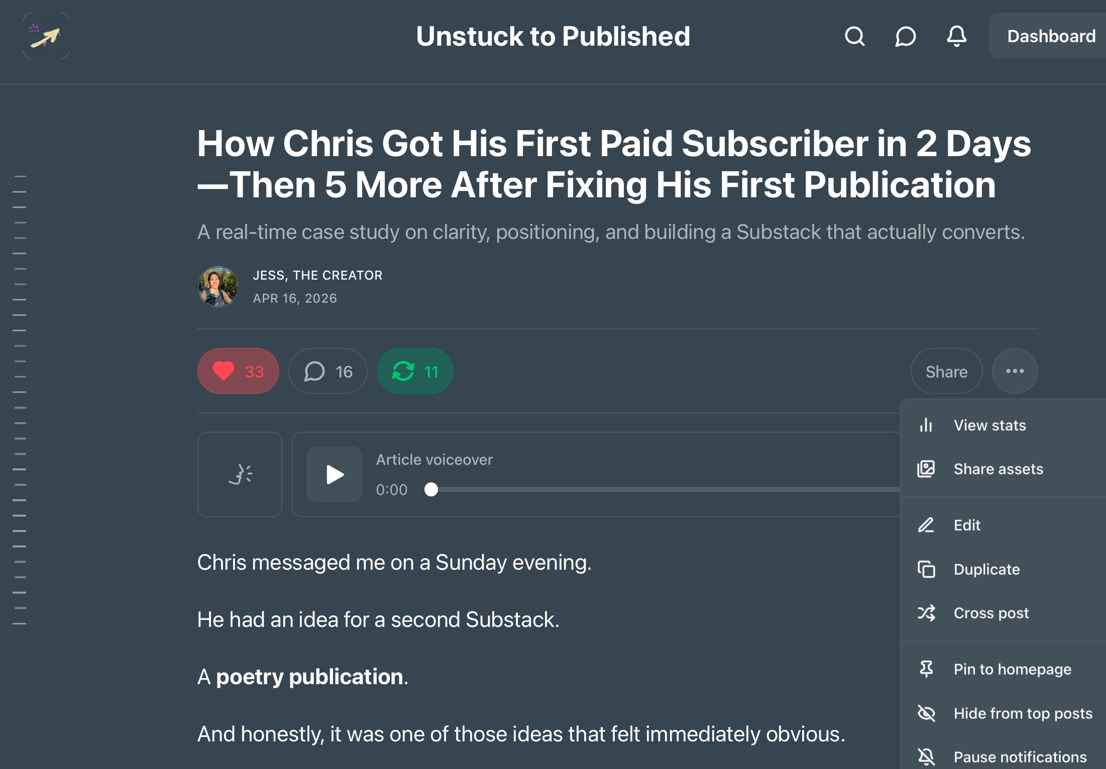 One, it’s one of my favorite features on Substack, but two, also because I understand what that moment actually is.