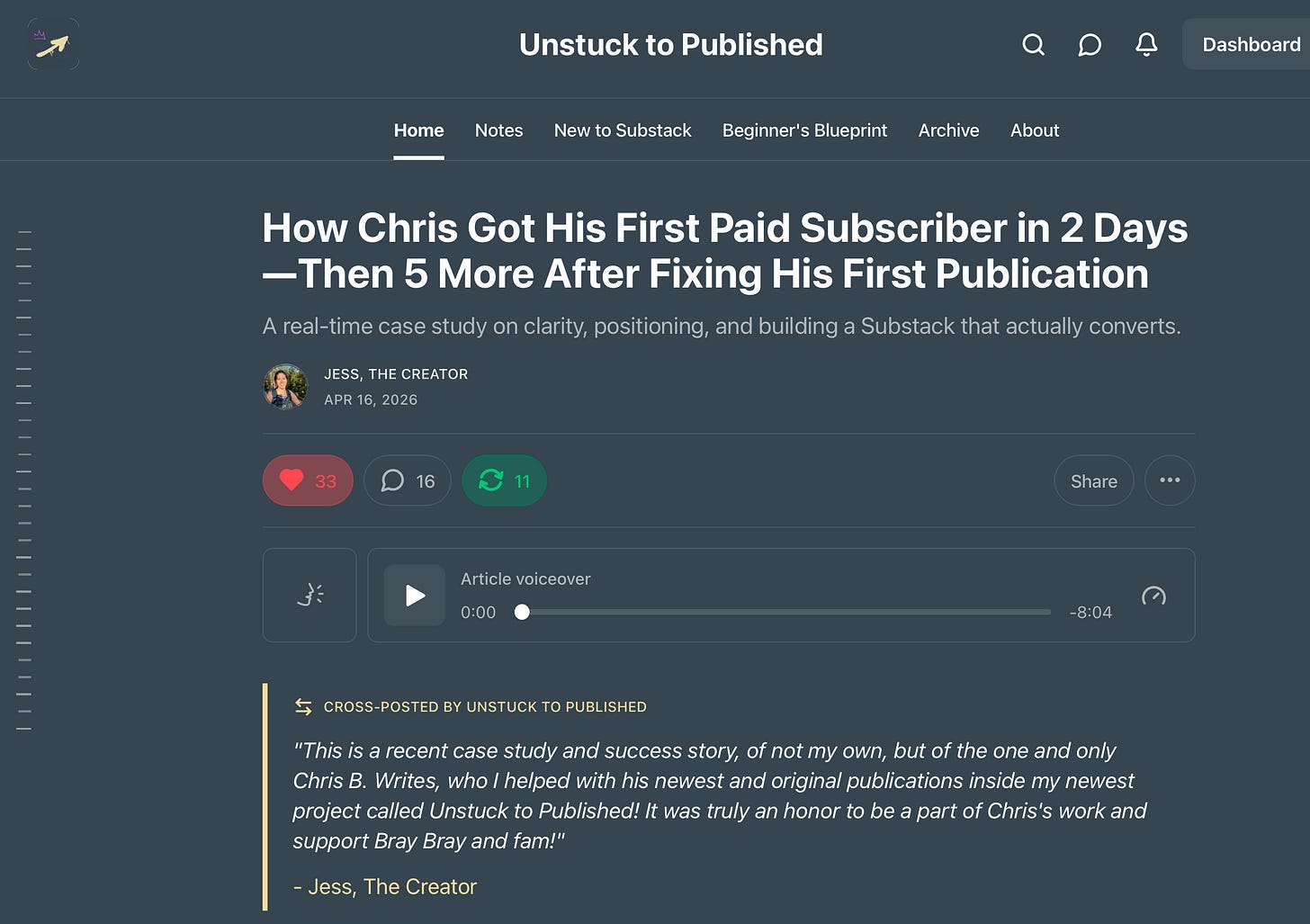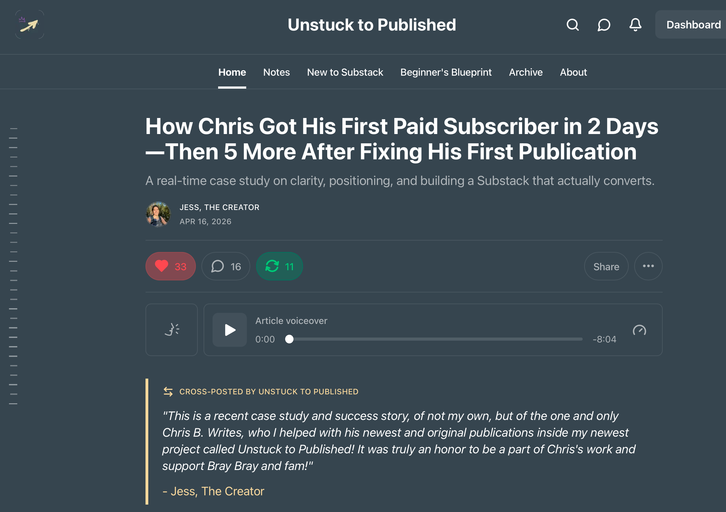 Here is what the final product will look like once you publish a cross-post. You can see here, right at the top of the article, is the commentary you wrote in the box about why the post was worth reading. And, that’s it!