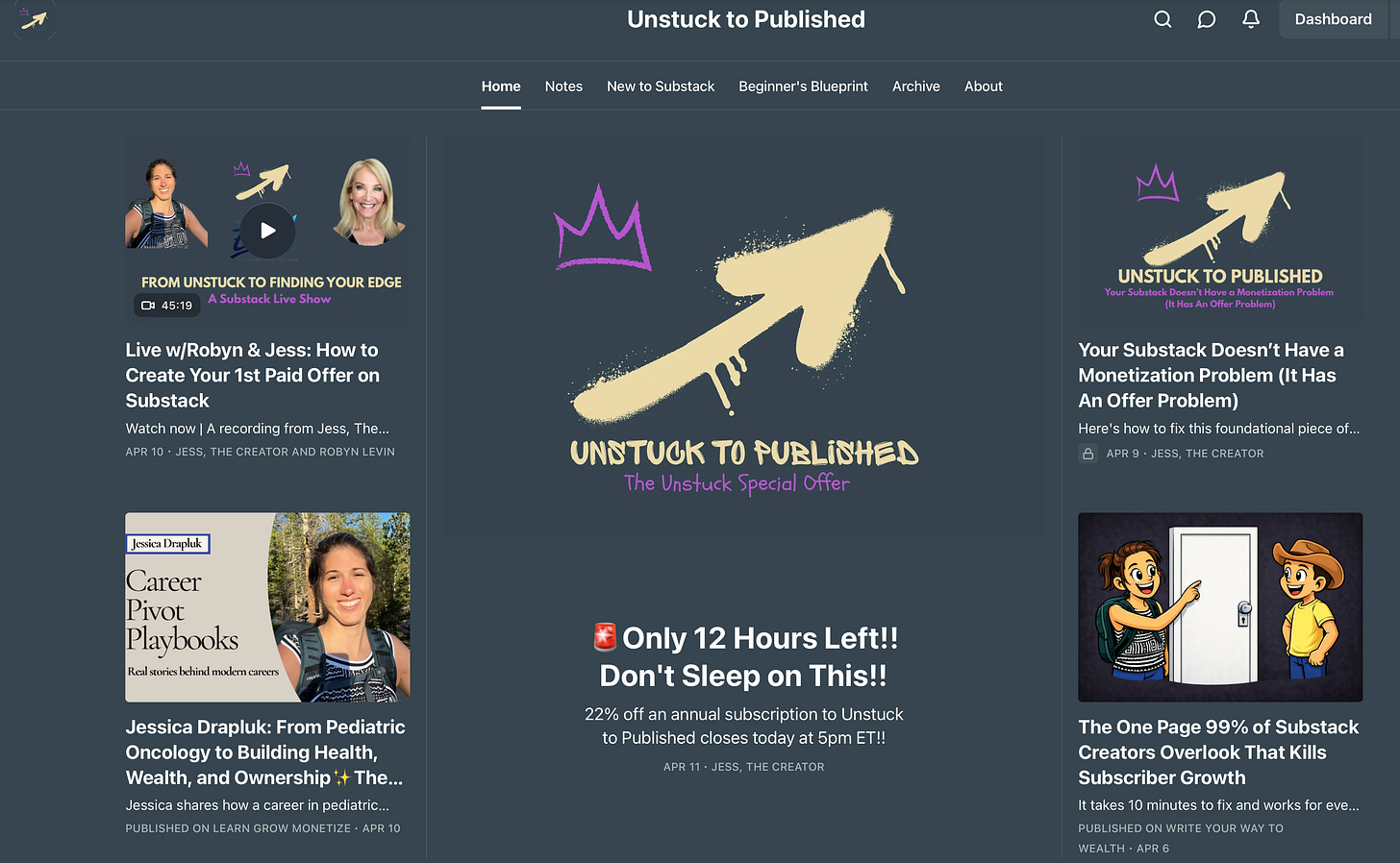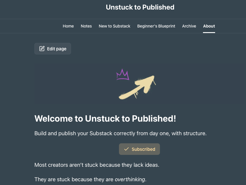 “If you’re serious about learning how to build a pristine Substack publication with a solid foundation that becomes an income-generating asset from day one, hit upgrade to join the Unstuck to Published Inner Circle of writers who are already miles ahead of the average new Substack creator.”